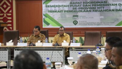 Rapat koordinasi ini menjadi momentum penting dalam memperkuat sinergi antara pemerintah pusat dan daerah, guna memastikan pengelolaan keuangan daerah yang sehat, adaptif, dan berkelanjutan, tanpa mengorbankan kesejahteraan aparatur serta masyarakat. (BAPNTT/OW/Dok.DC)